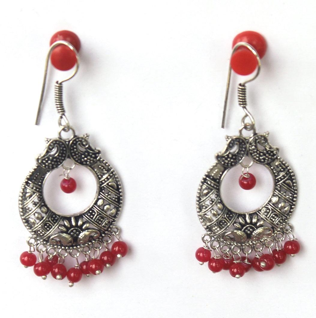 German Silver Chandibali Earring Red