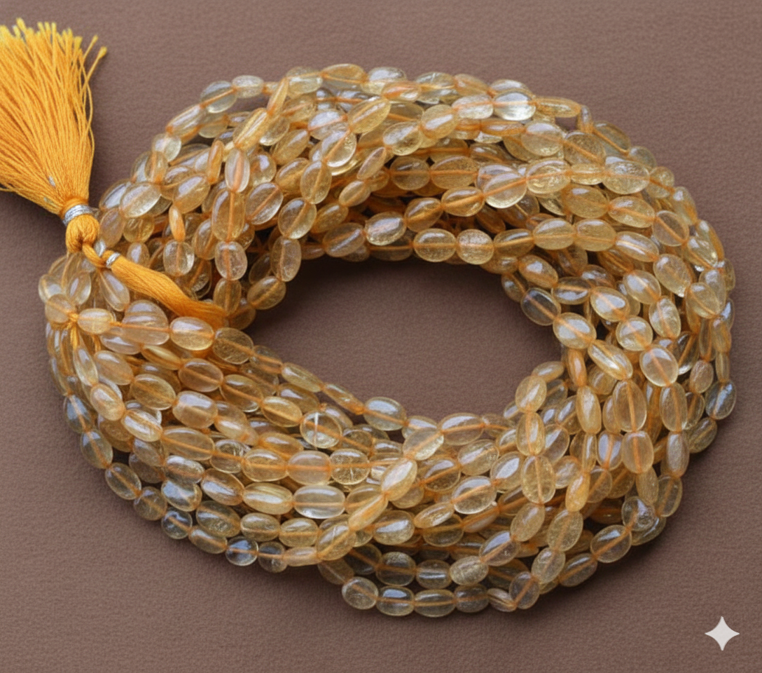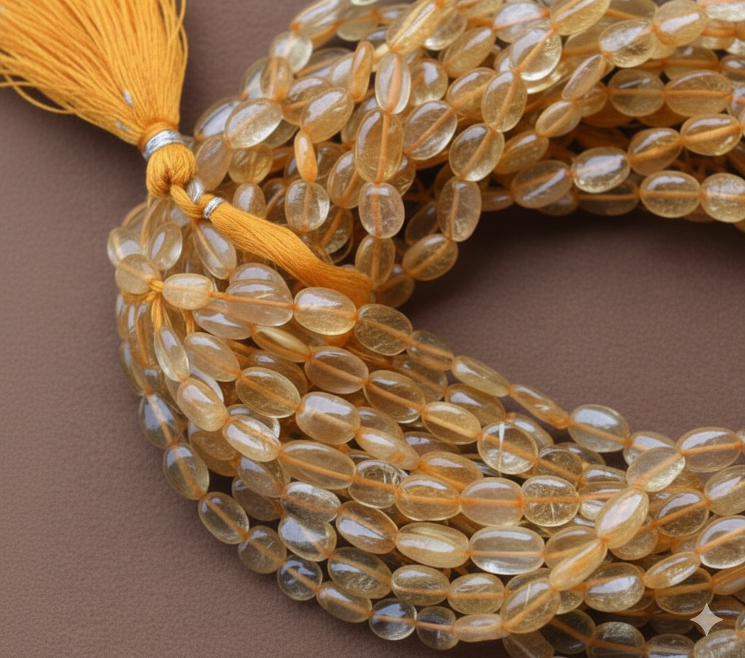 • ☀️ Oval Citrine stone beads – Golden, 12x8mm
