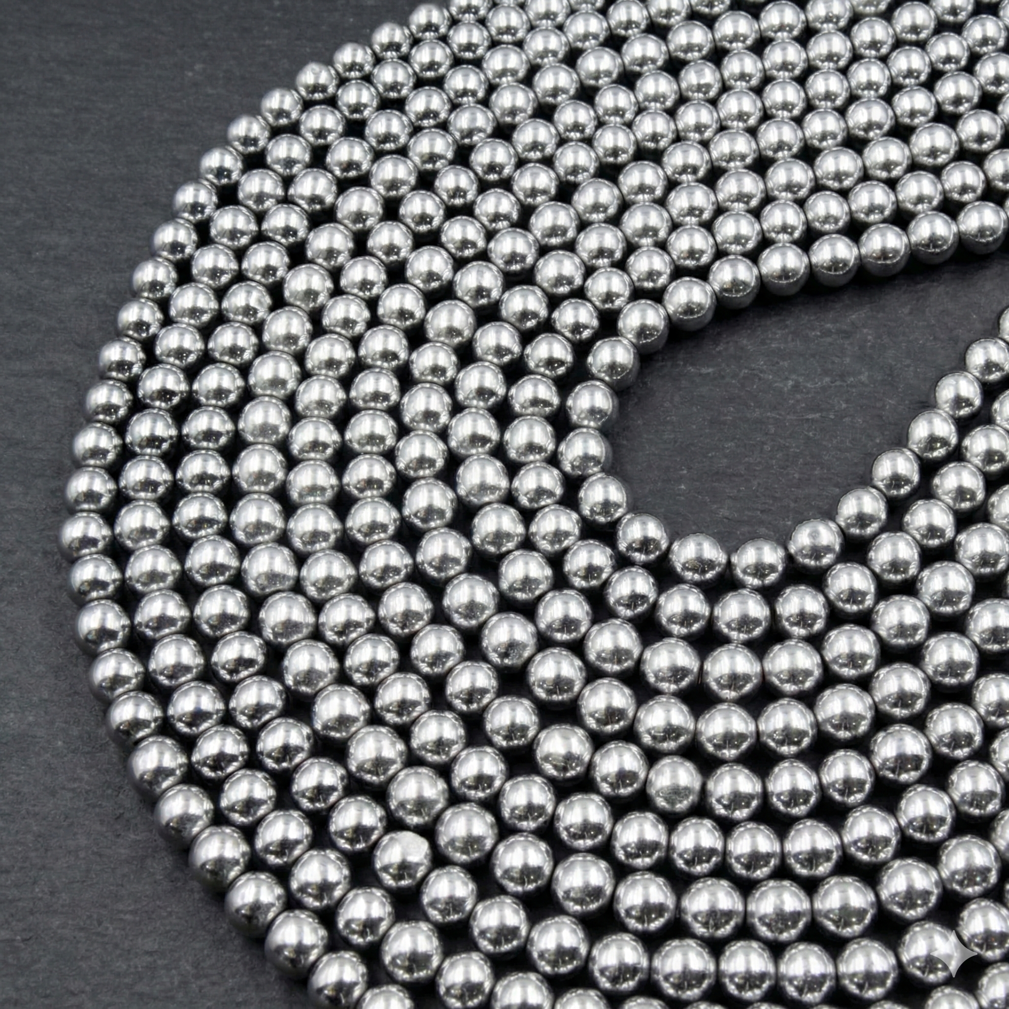 1 String Hematite Beads Round Silver 4mm