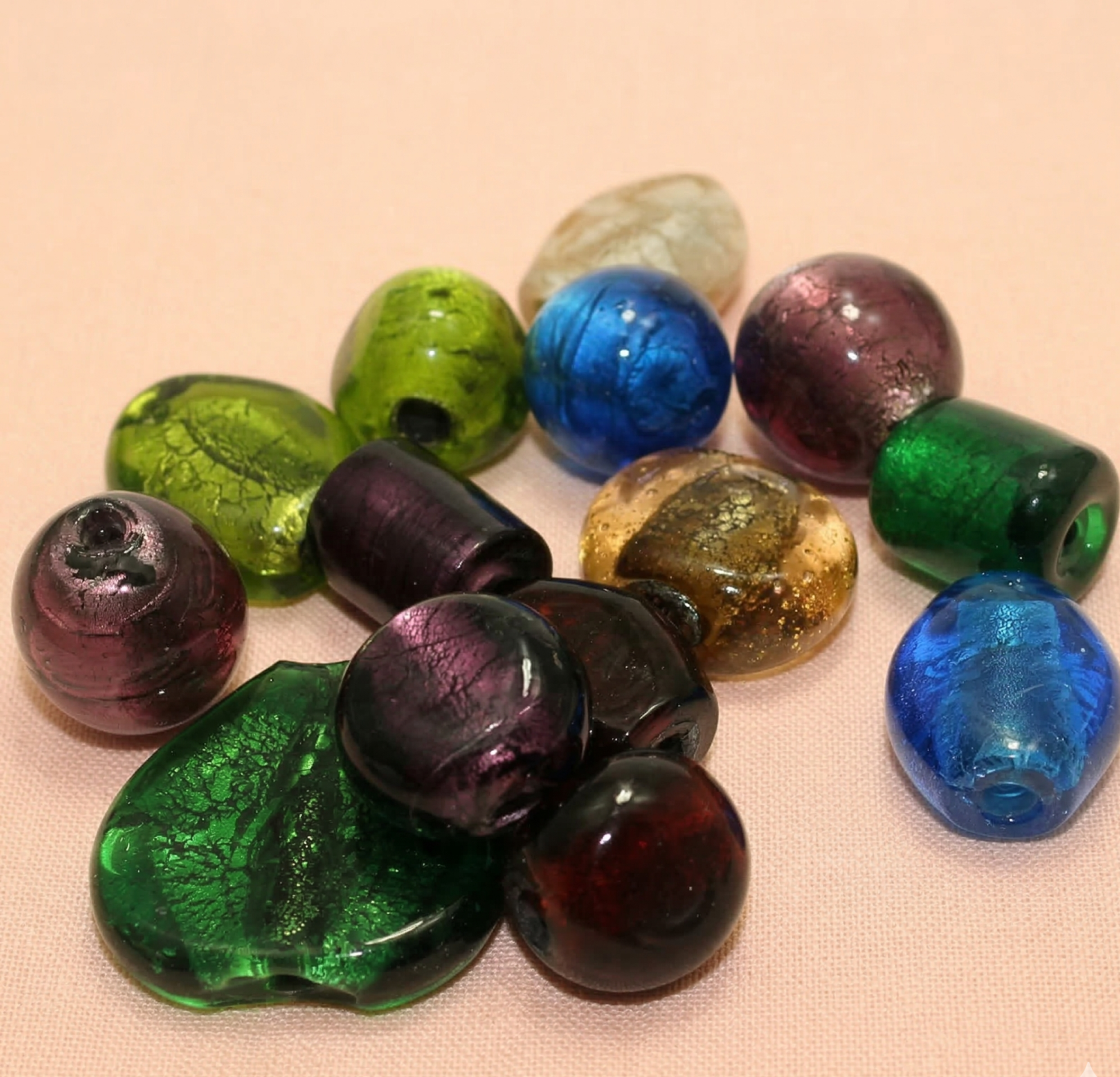 Available in a pack of 30 Pcs. The silver foil brings inner glow and can become a good addition to the bracelets. The beads are developed manually in which glass rods are put over a flame and then molten glass is poured over the molds to give them a shape. The beads are available in different shapes, sizes and colors, which can make necklaces and bracelets elegant. Size: 10-24 mm