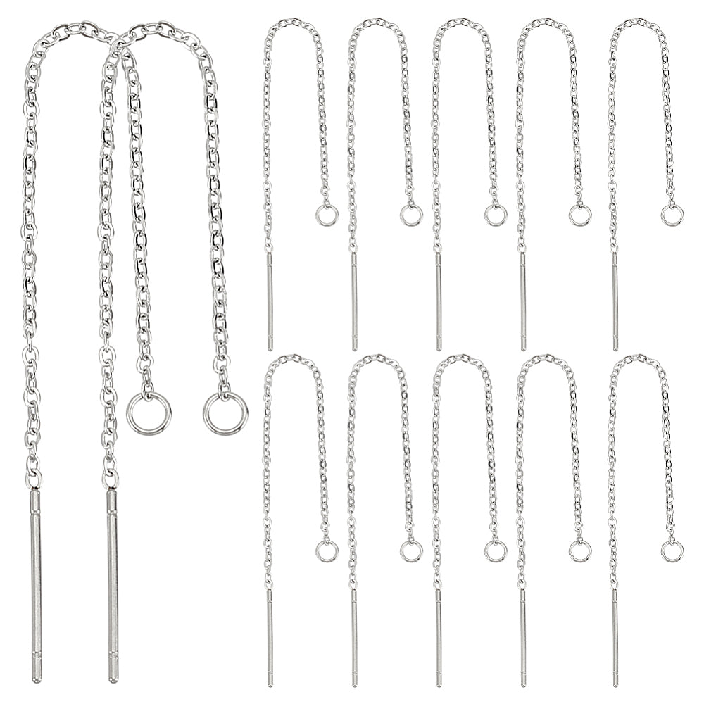 4 Pcs 304 Stainless Steel Earring Findings, Ear Threads Steel Color, 90~94x1.2mm