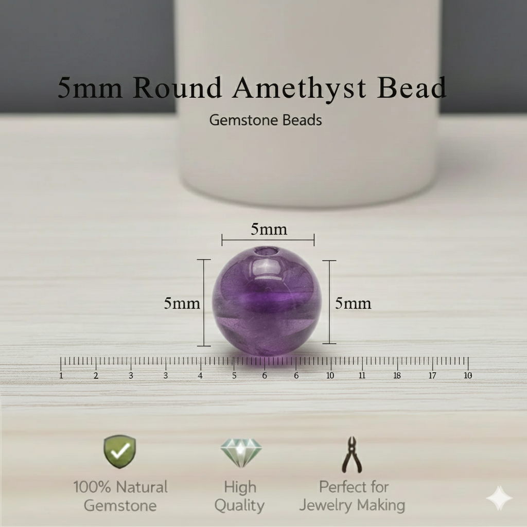 • 💜 5mm round Amethyst stone beads Purple