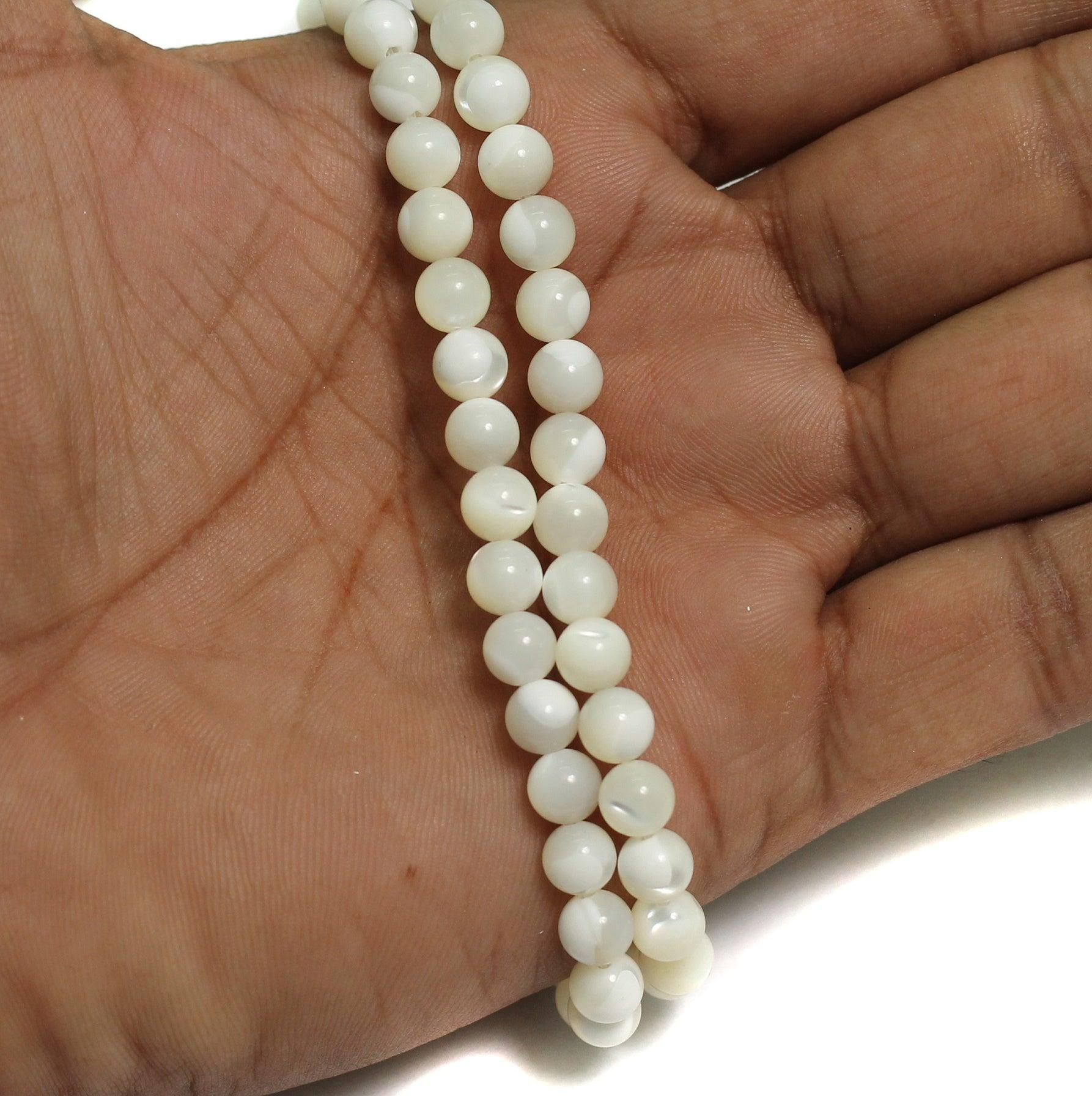 1 String, Off White Round Mother Of Pearl Shell Beads