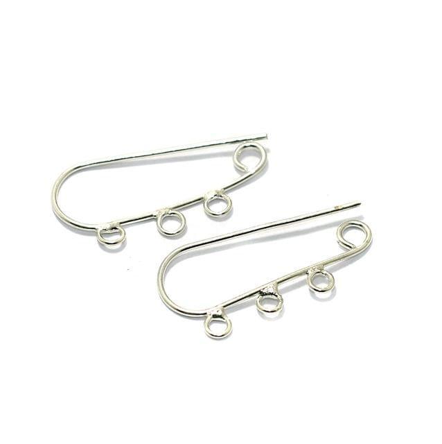 4 Pcs, Brass Earring Hooks Silver 1.25 Inches