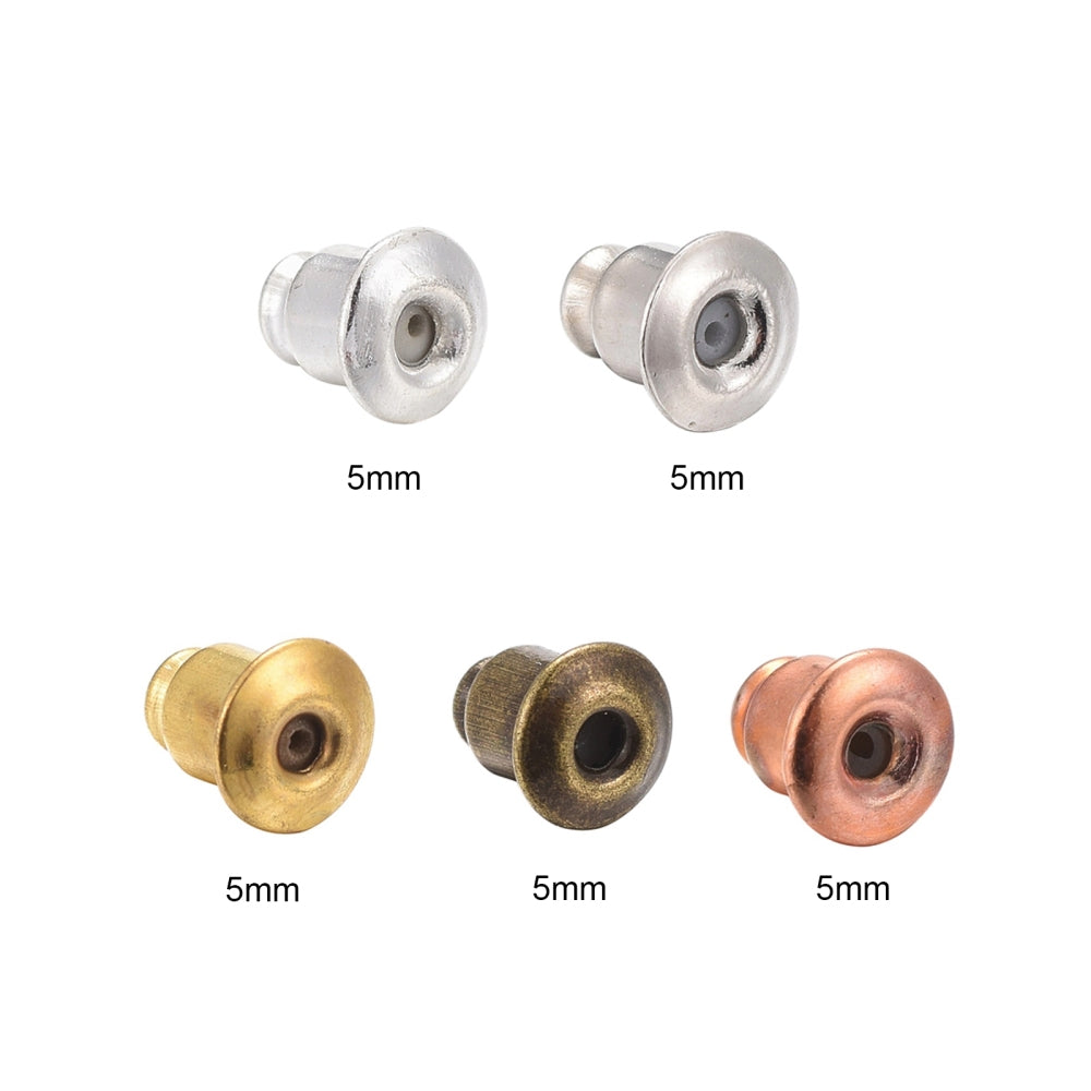 50 Pcs, 5x5mm, Brass Ear Nuts, Earring Backs, Bullet, Mixed Color
