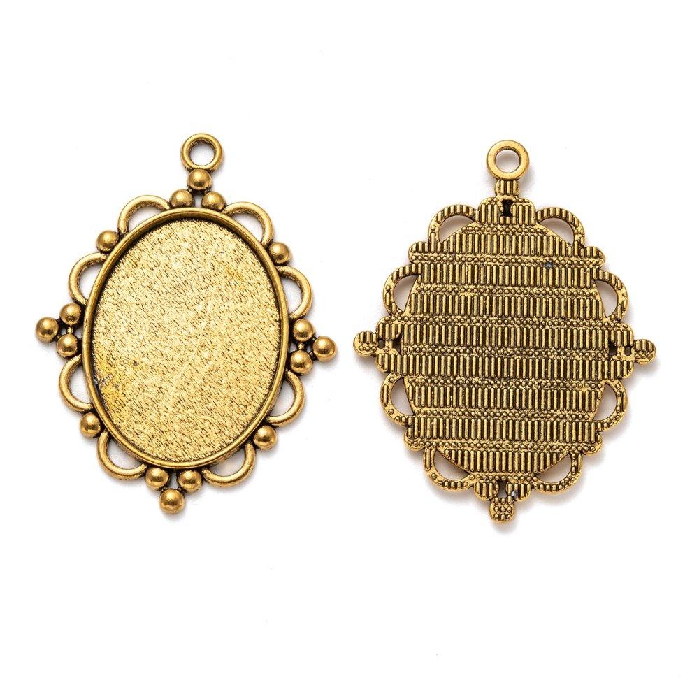 2.5 Inch Tibetan Style Alloy Flat Oval Pendant Cabochon Settings Antique Golden