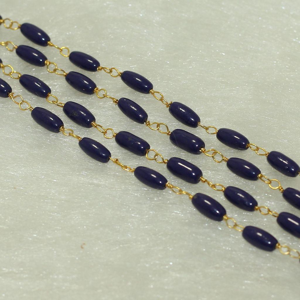 1 Mtr, 9x4mm Purple Oval Glass Beaded Chain