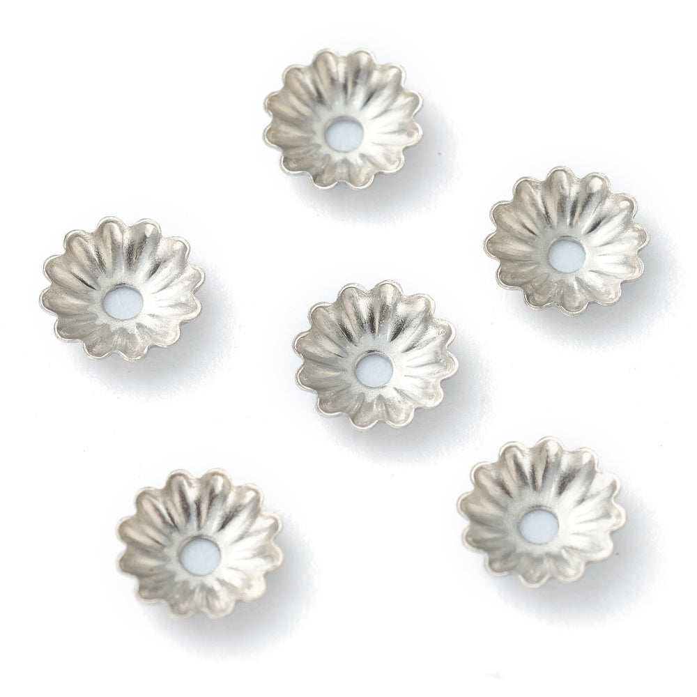 100 Pcs, 304 Stainless Steel Bead Caps, Multi-Petal, Flower, 5.7x1.4mm