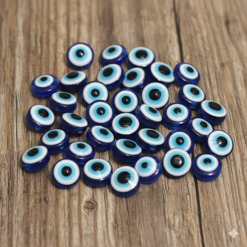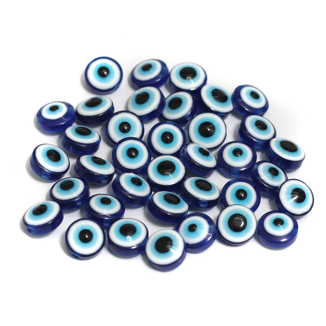100 Pcs 6-10mm Evil Eye Disc Beads Blue
