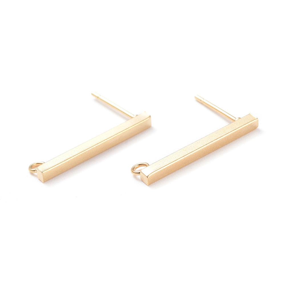 304 Stainless Steel Stud Earring Findings, Rectangle, Real 18K Gold Plated