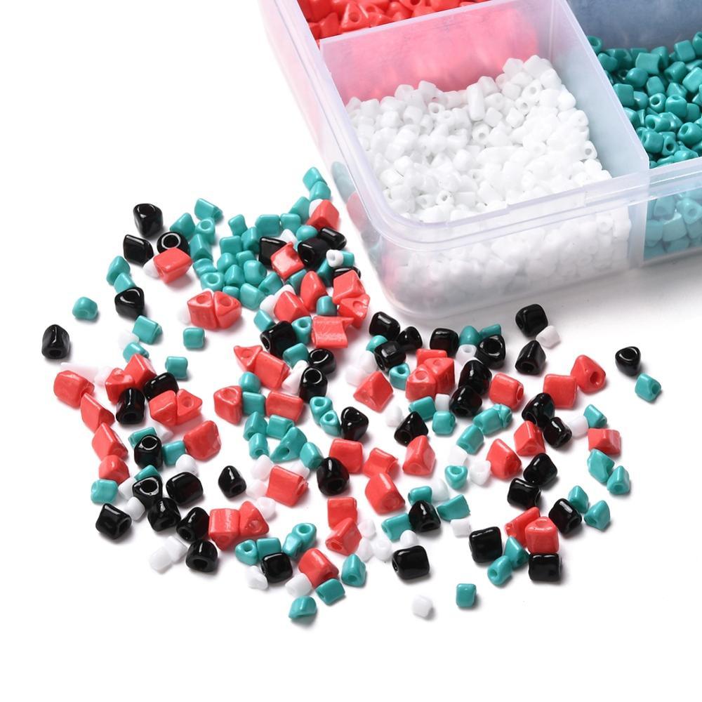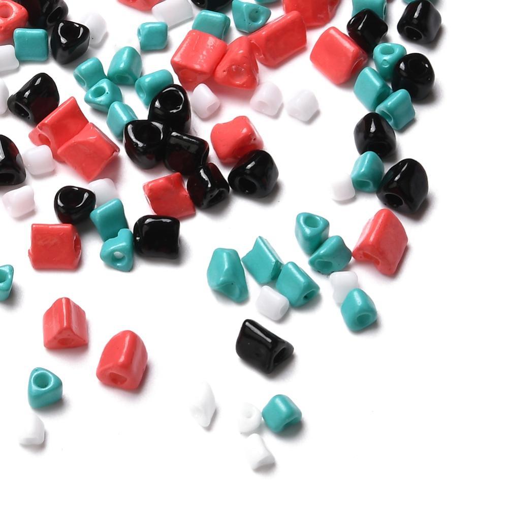 Triangle Opaque Glass Seed Beads: 1~3x2.5x2mm, hole: 0.5mm, 2 colors, 750pcs/color, 1500pcs;