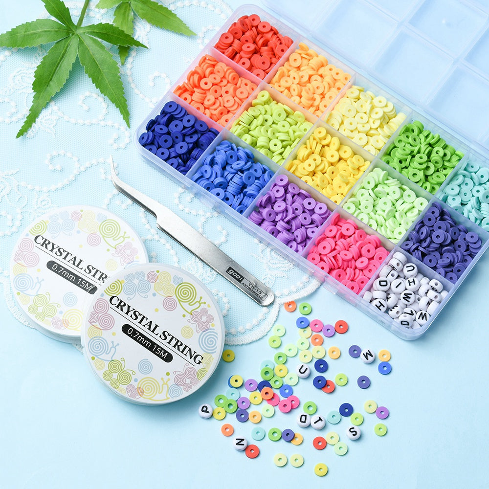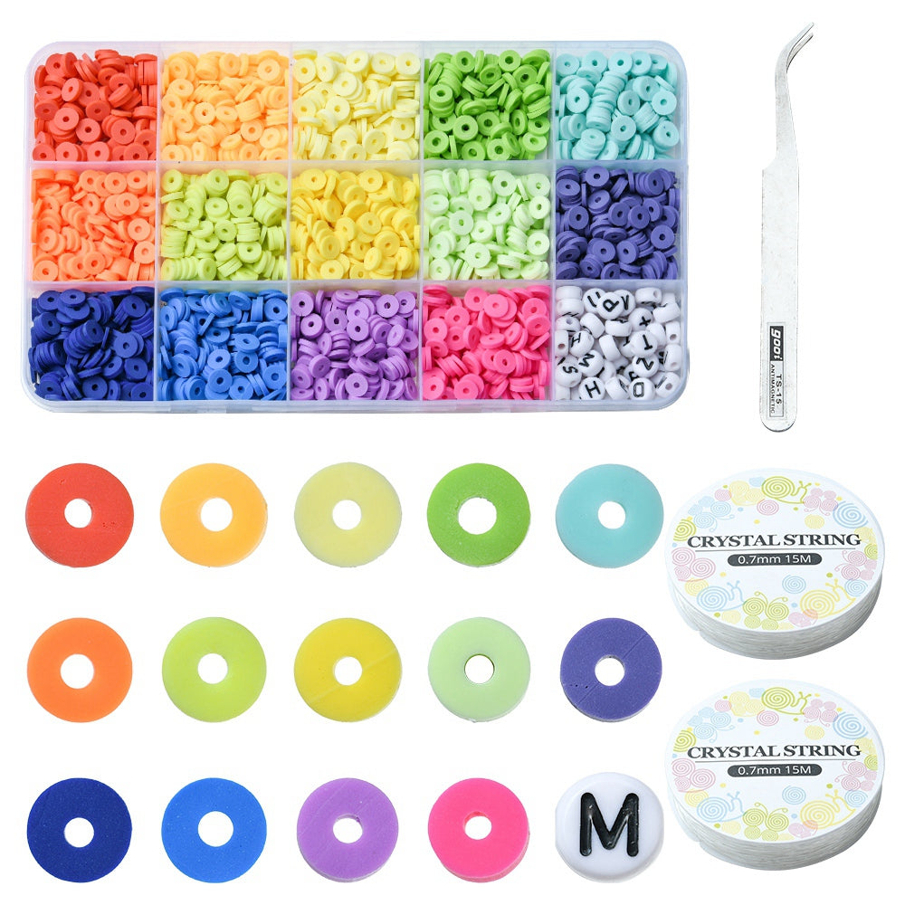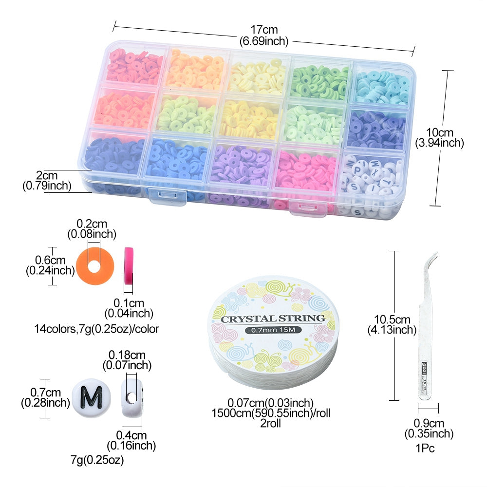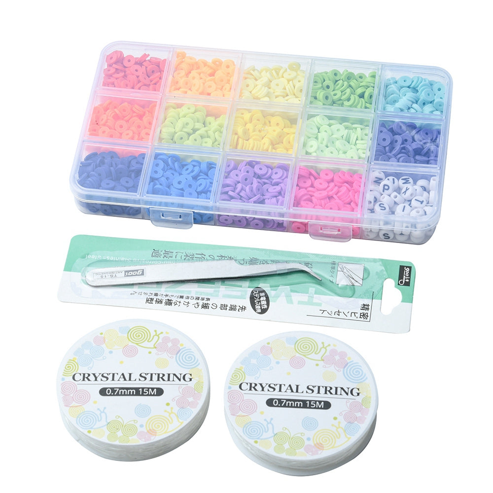 DIY Heishi Word Bracelet Making Kit, Including Disc/Flat Round Polymer Clay & Letter Acrylic Beads, Elastic Thread, Tweezers